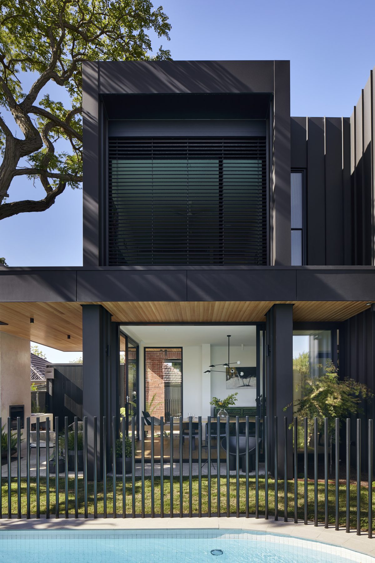On the outside, we put together a full alfresco experience by building an outdoor brick fireplace and timber-lined entertaining area, plus a brand-spanking new swimming pool.